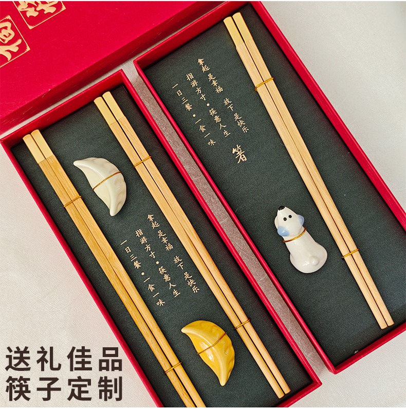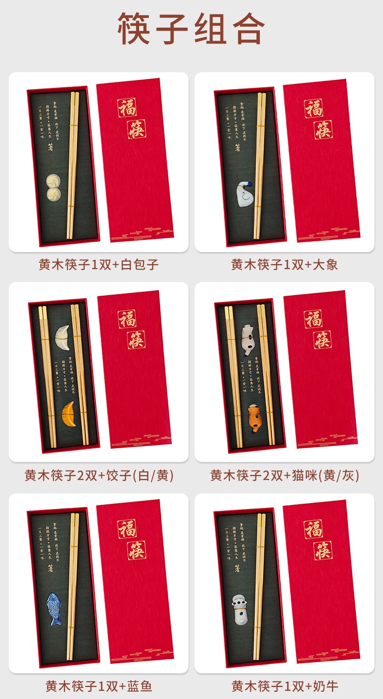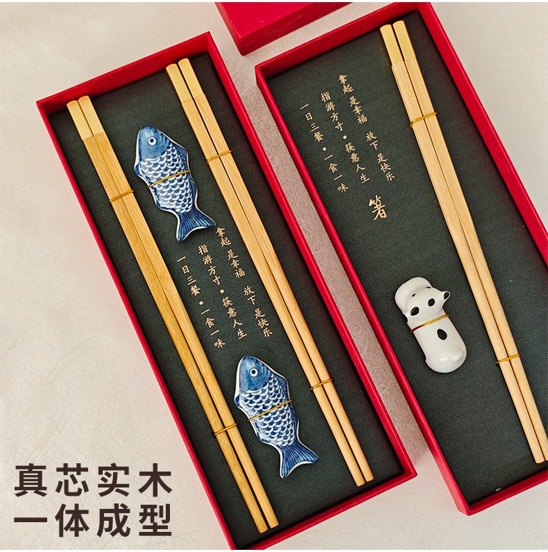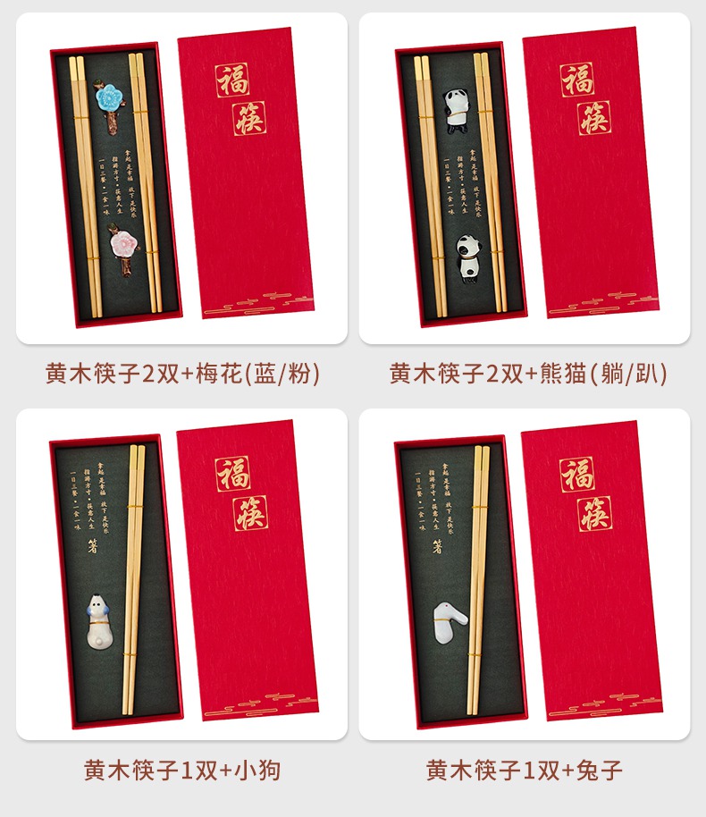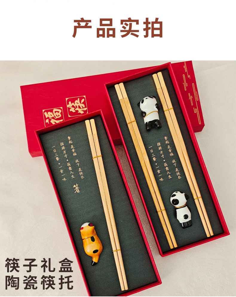 中国风筷子+陶瓷熊猫筷托礼盒套装