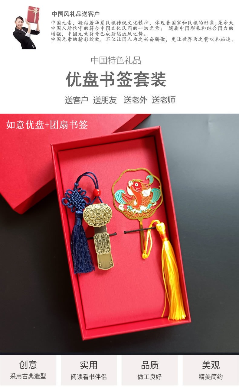 如意U盘+创意团扇书签套装