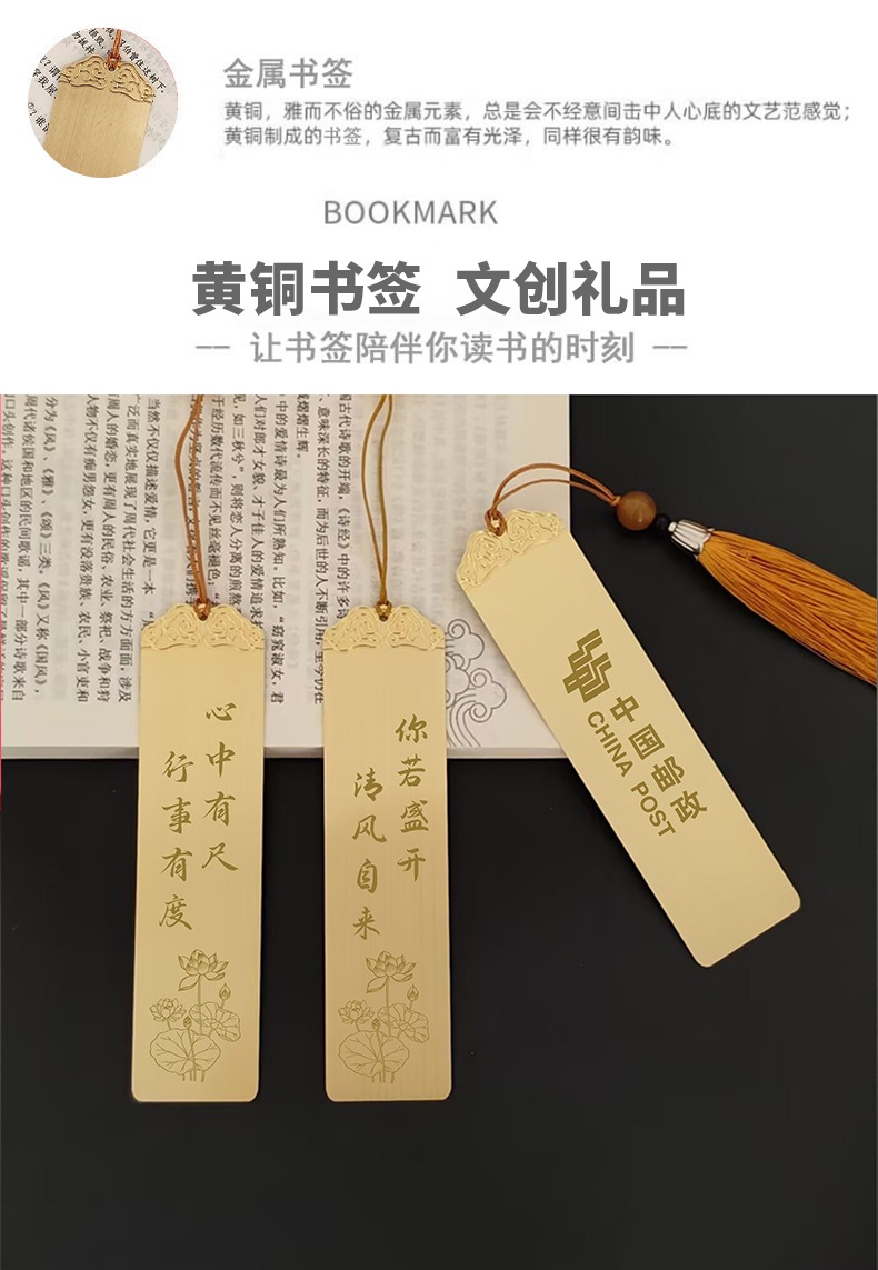 黄铜光板书签,可定制刻字