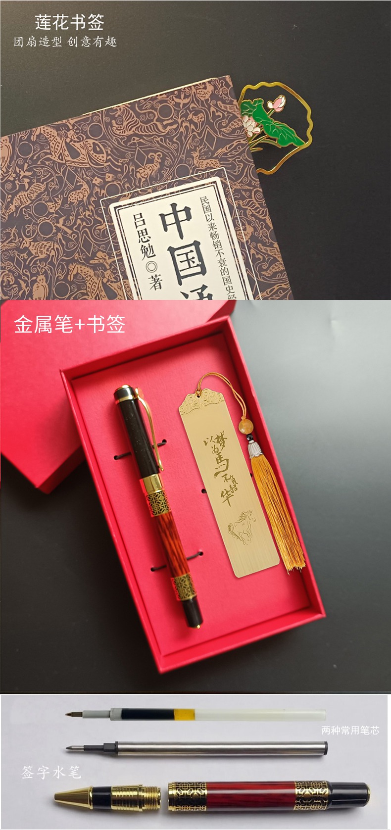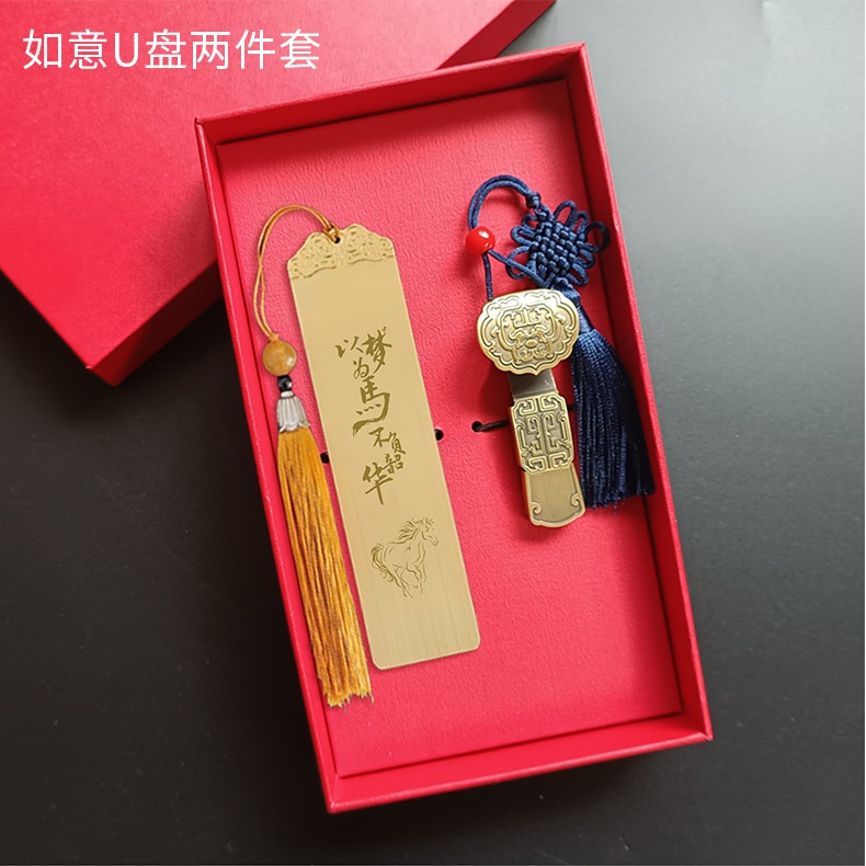 金属水笔+如意U盘+尺子书签套装定制刻字