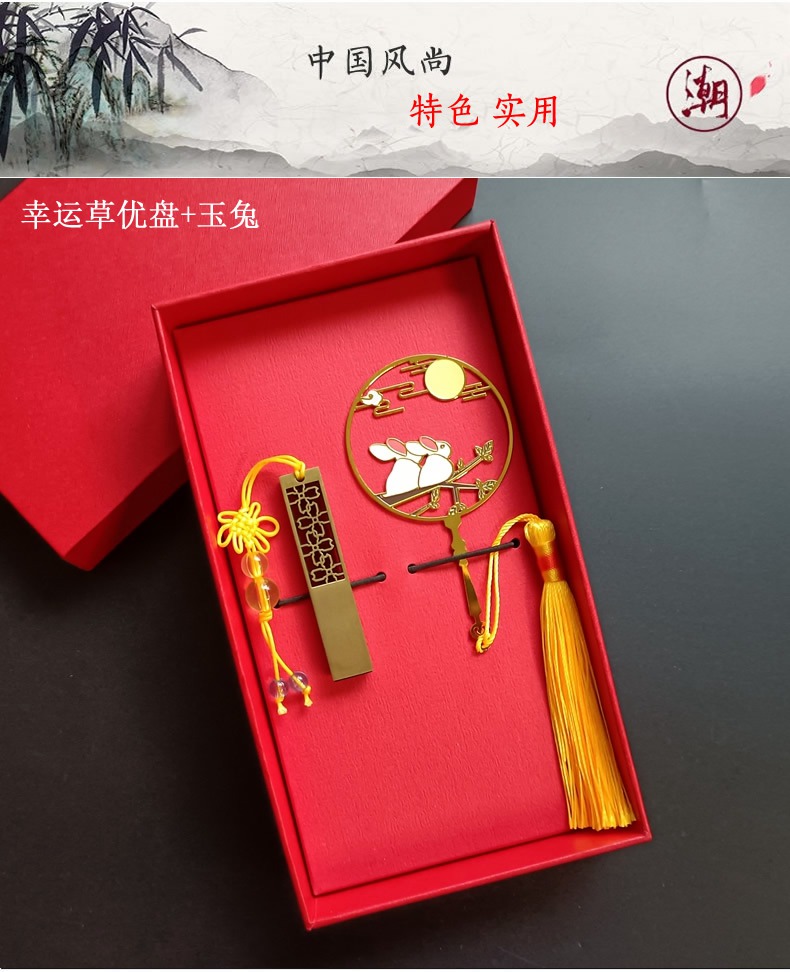 金属水笔+如意U盘+尺子书签套装定制刻字
