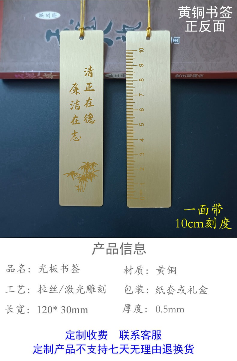 黄铜光板书签,可定制刻字