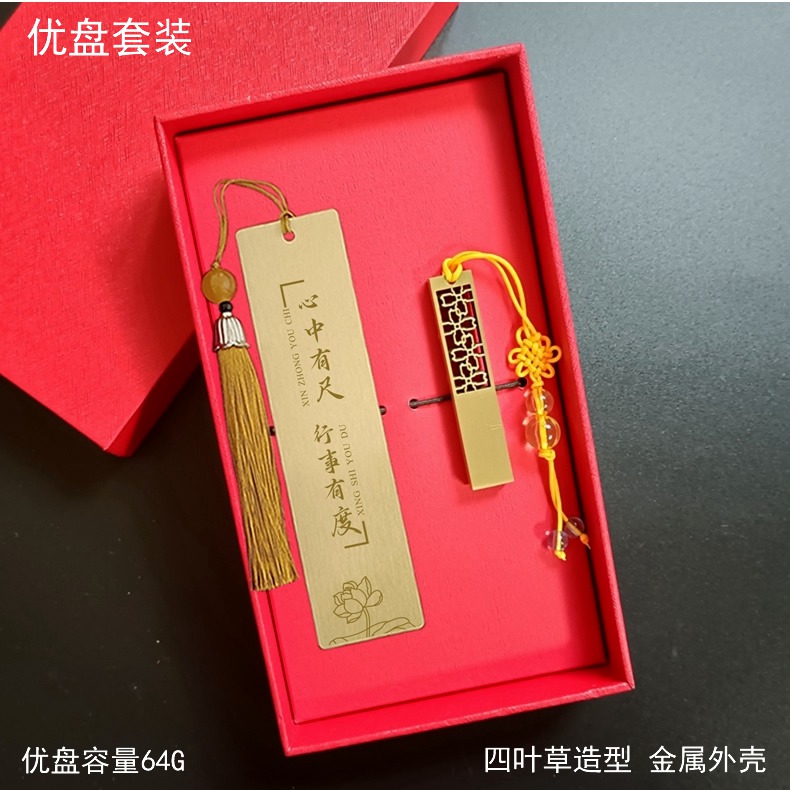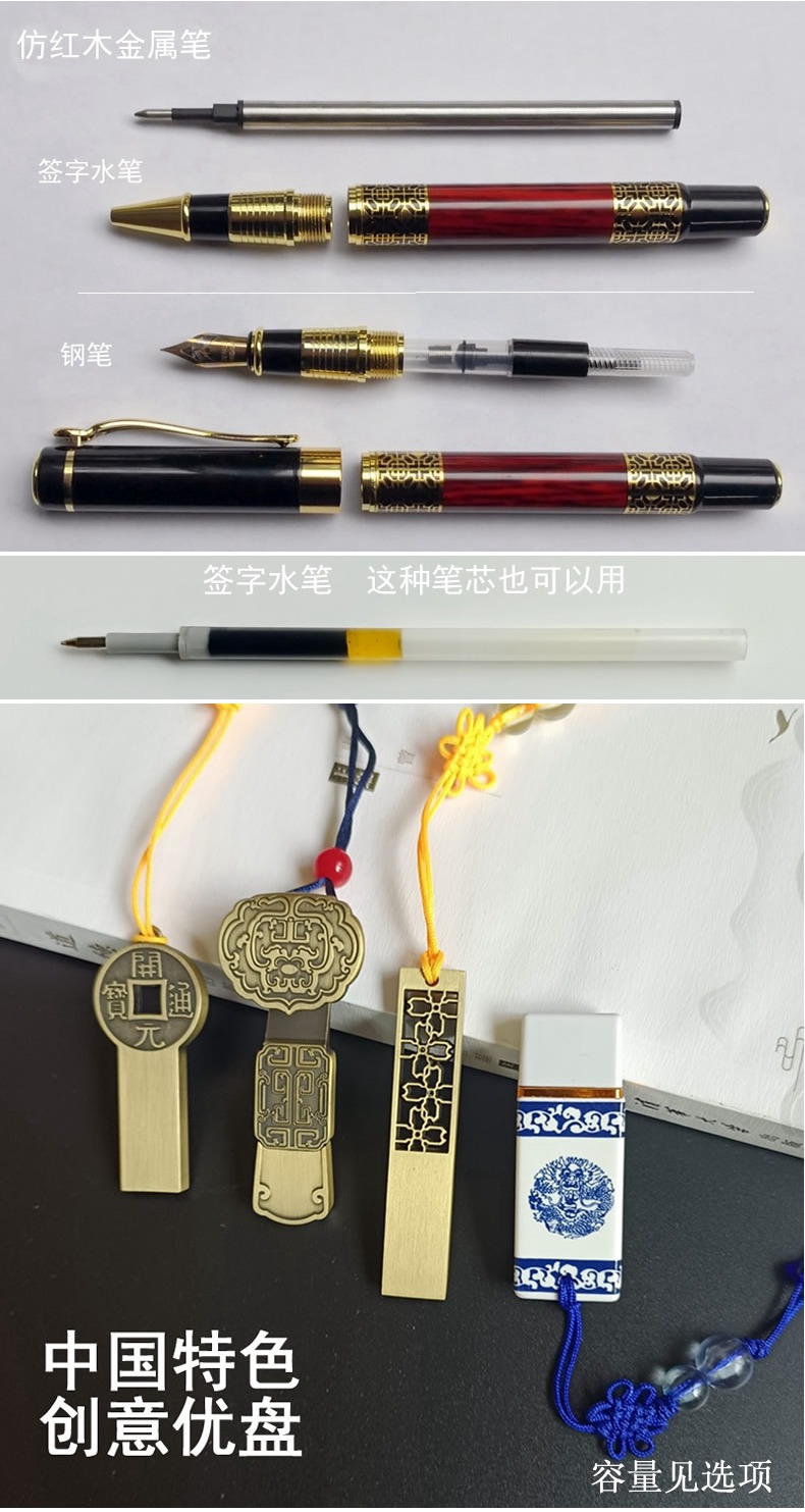 金属水笔+如意U盘+尺子书签套装定制刻字